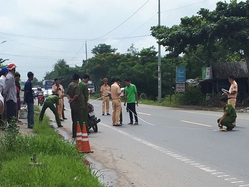 Công an tỉnh Sóc Trăng thực nghiệm hiện trường vụ tai nạn.