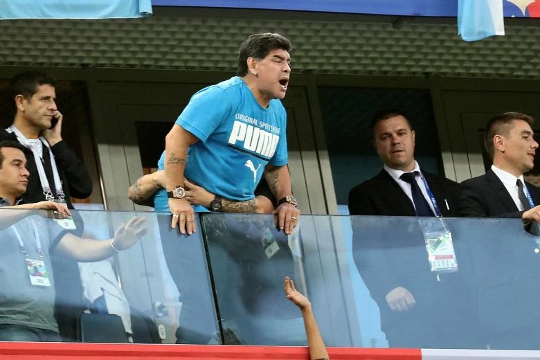 Maradona đến nước Nga với tư cách khách VIP và là đại sứ bóng đá của FIFA đã phải “lên bờ xuống ruộng” vì “con cháu, hậu duệ” đá tệ quá khiến ông tăng xông, mệt mỏi, hạ huyết áp…