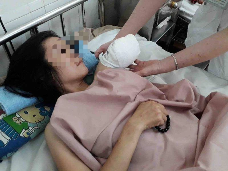 Bà Nguyễn Thanh Hằng, điều dưỡng trưởng Khoa chấn thương - chỉnh hình, cho biết chị C. bị dập nát và đứt gần lìa cẳng và bàn tay trái. Chưa hết, chị C. còn bị vết thương đùi trái 20 cm, vết thương đầu 3 cm.