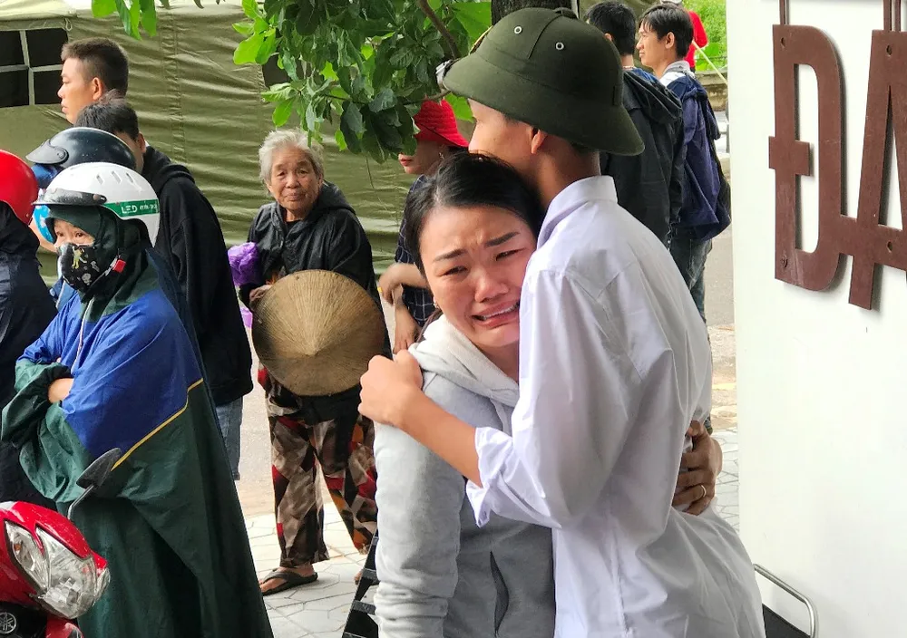 Trưa 19-10, hàng chục người thân của các cán bộ, chiến sĩ sư đoàn 337 ngồi chờ trước nhà thi đấu đa năng tỉnh Quảng Trị chờ được vào nhận thi thể người thân.