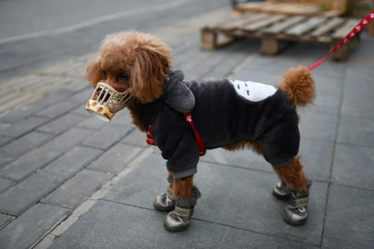 Một chú chó được rọ mõm tại Bắc Kinh, Trung Quốc. Ảnh: AFP