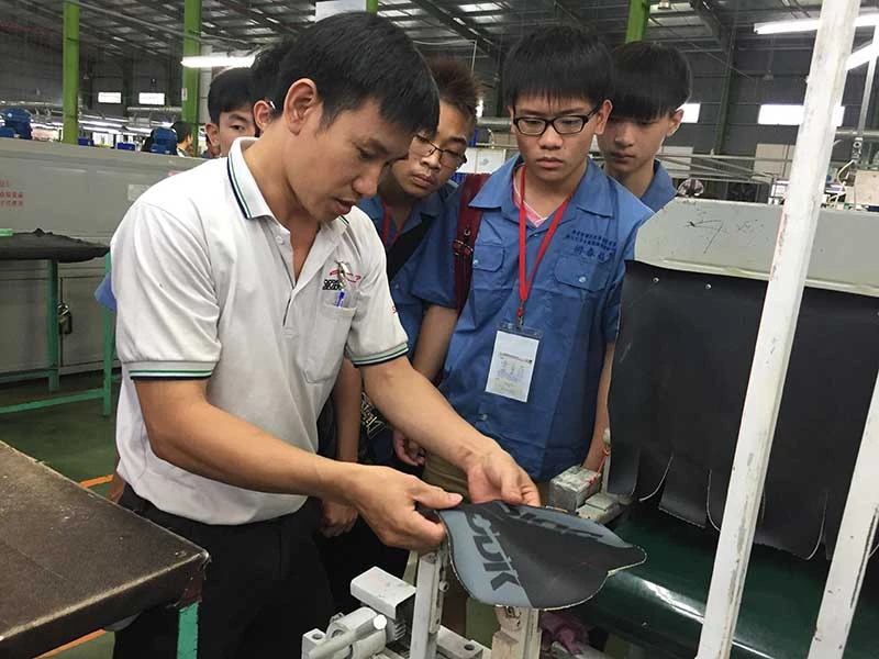 36 học sinh là con cô dâu Việt tại Đài Loan về Việt Nam thực tập tại doanh nghiệp sản xuất yên xe đạp. Ảnh: P.ĐIỀN
