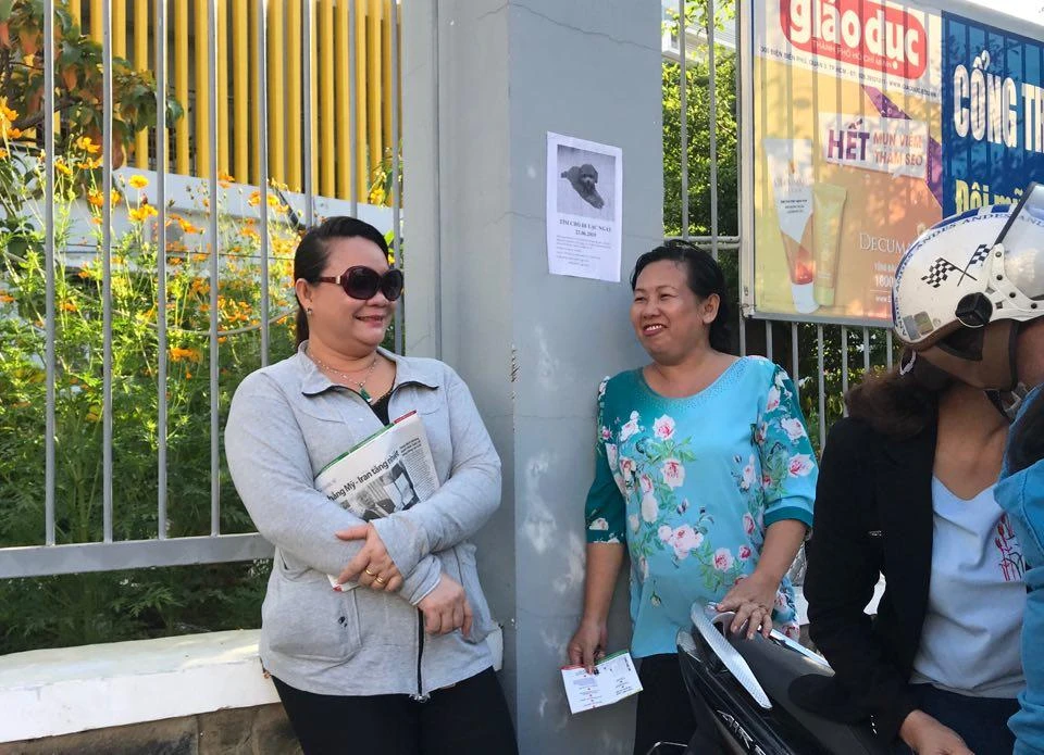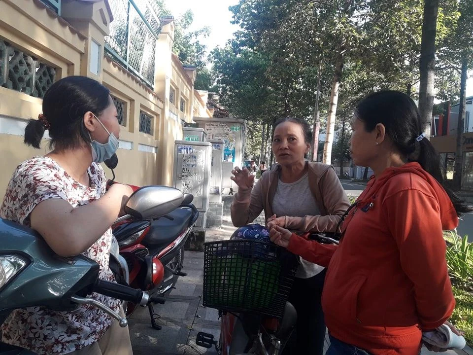 Chị Huế đang trò chuyện với các phụ huynh khác