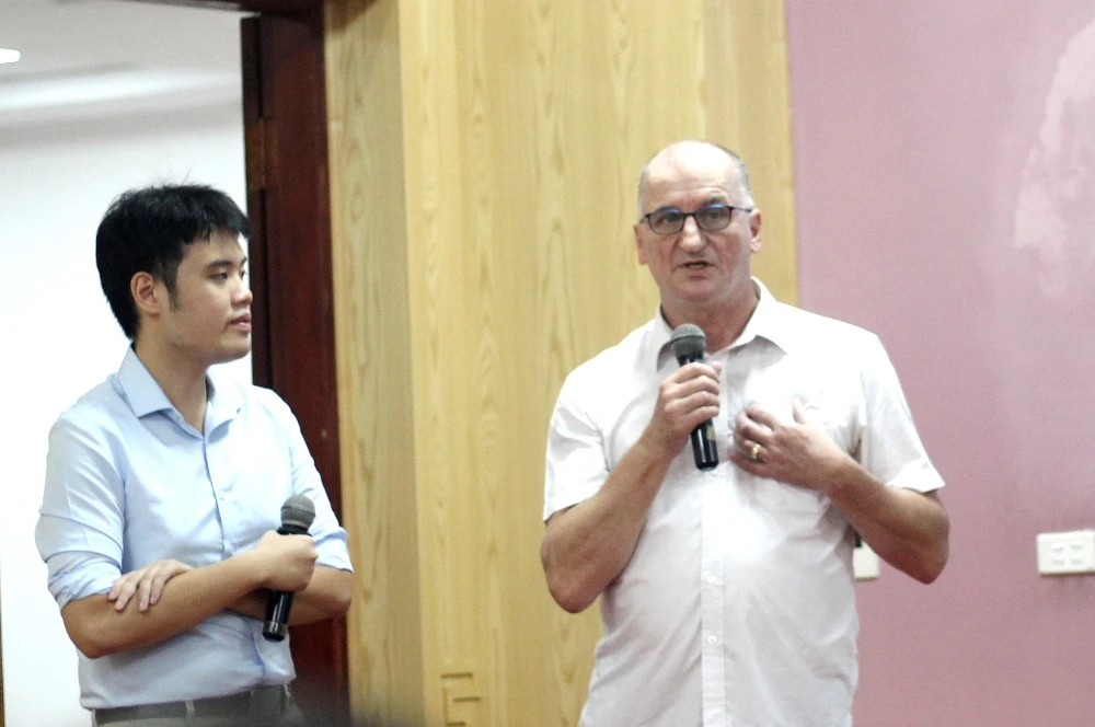 Ông Wayne Worrell, người khởi xướng chương trình "Cảm ơn Việt Nam" và "Việt Nam cố lên" trên mạng xã hội phát biểu tại lễ ra mắt. Ảnh: VT