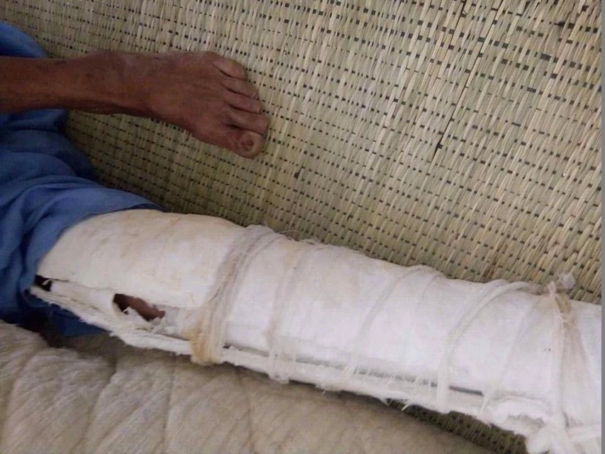 Ông N. bị đánh mẻ cả xương ống chân phải bó bột, điều trị.