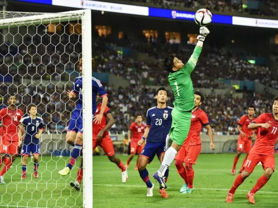 Thủ môn Izwan (số 1) của Singapore làm nản lòng các chân sút Nhật