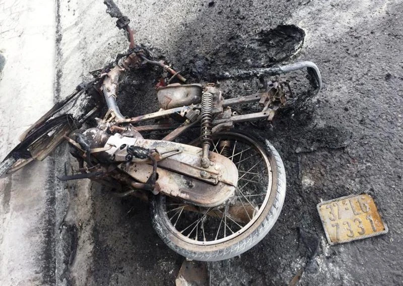Do thời tiết nắng nóng lửa cháy nhanh và nhóm thanh niên hung hãn nên người dân không dám can ngăn. Tại hiện trường, xe máy 37L6-7331 cháy trơ khung sắt.