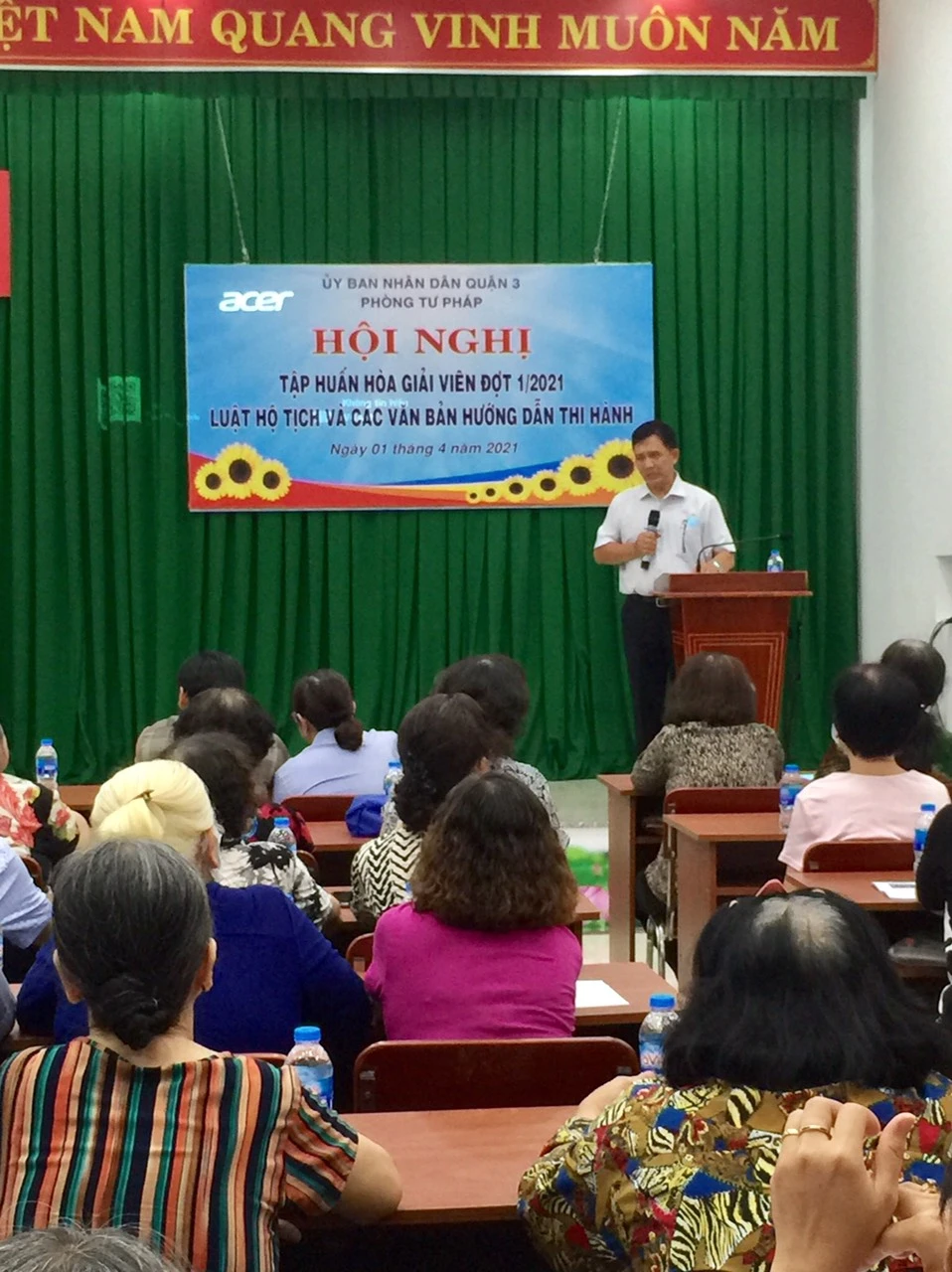 Tối 1-4, Phòng Tư pháp quận 3 (TP.HCM) kết hợp với Trung tâm trợ giúp pháp lý nhà nước TP.HCM tổ chức trợ giúp pháp lý lưu động và tập huấn kiến thức pháp luật về Luật Hộ tịch (LHT) và các văn bản hướng dẫn thi hành cho hòa giải viên ở cơ sở và người dân trên địa bàn quận.