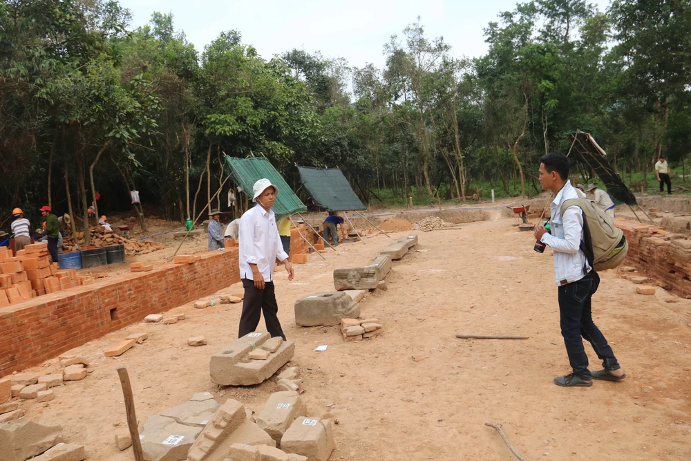 Các chuyên gia Ấn Độ đang hướng dẫn các công nhân khôi khục lại hai thành dẫn của con đường cổ. Vật dụng được dùng trong quá trình trùng tu là tận dụng lại những viên gạch cũ khai quật và thêm một số gạch mới được mua tại các lò gạch nung.
