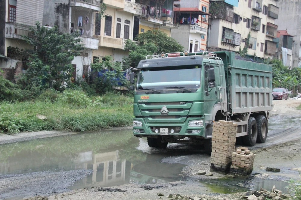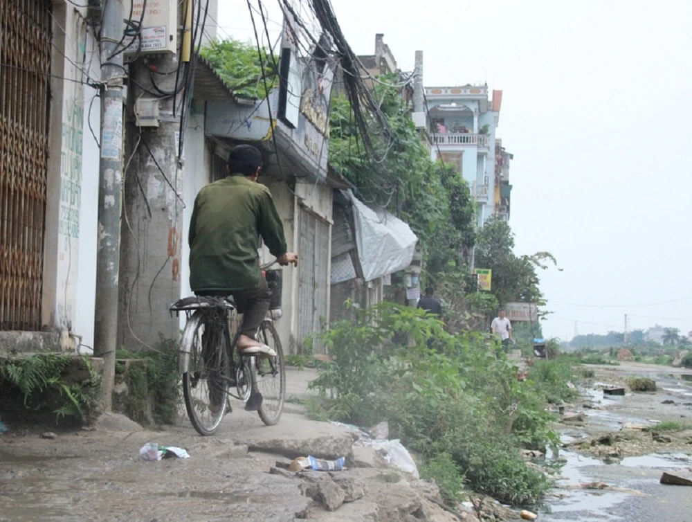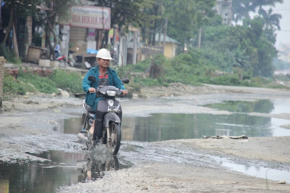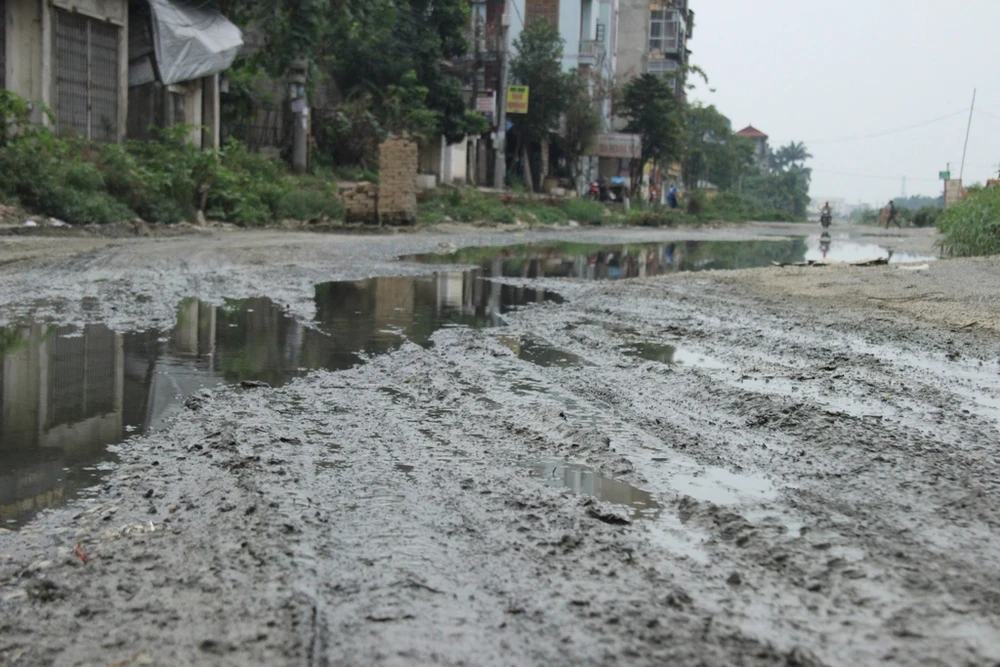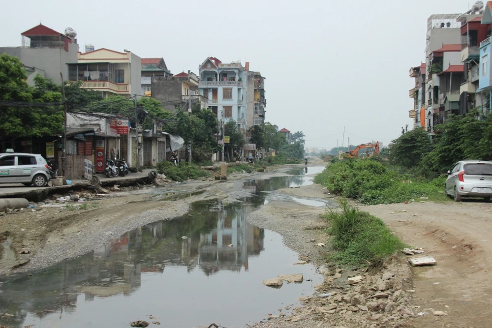 Theo phản ánh, đoạn đường chạy qua địa phận xã Cổ Nhuế 2 dài khoảng 1 km, hiện đã được đơn vị thi công san ủi và rải đá. Tuy nhiên, do bị "bỏ rơi" nhiều năm liền, hiện đoạn đường này đang ngày càng xuống cấp, luôn trong tình trạng ngập ngụa nước thải.