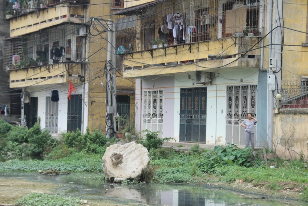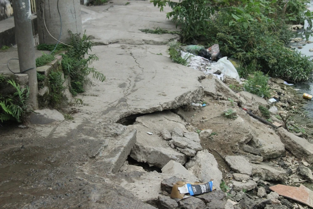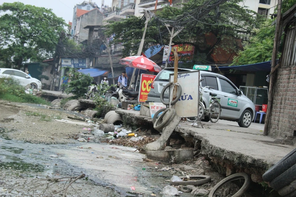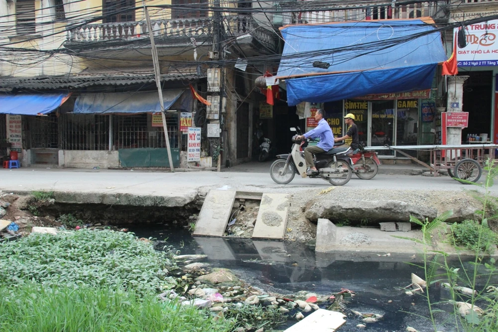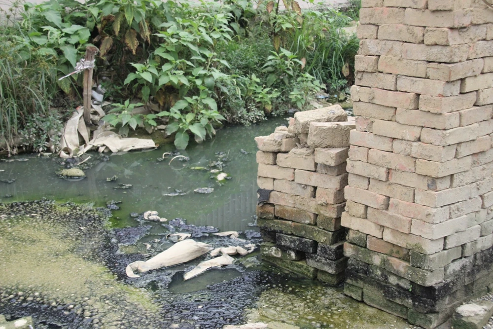 Nhiều cống rãnh hiện đang xuống cấp hoặc bị sụt lún. Nước thải từ nhiều hộ dân bị dồn ứ lâu ngày đã chuyển màu đen ngòm, sền sệt và hôi thối.