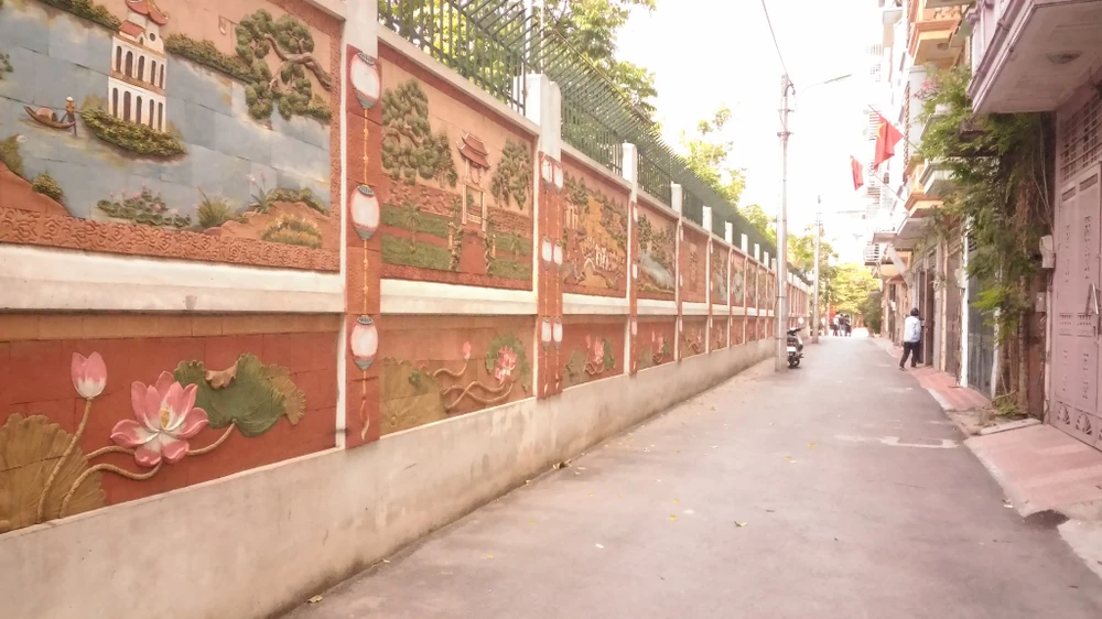 Bà Bùi Thị Sinh, tổ phó tổ dân phố 28, cho biết trong quá trình thực hiện, diện tích trước cửa nhà của mỗi hộ sẽ được phép chọn lựa khung cảnh trên bức tường nhưng tất cả phải cùng một màu sắc nhằm đảm bảo tính đồng bộ.