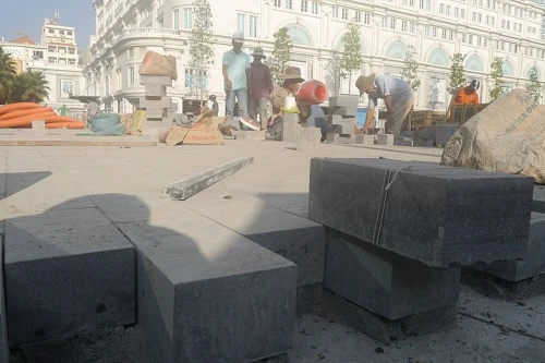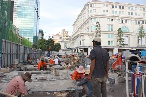 Các công nhân cũng đang nỗ lực thi công đường Nguyễn Huệ để sớm hoàn tất dự án.