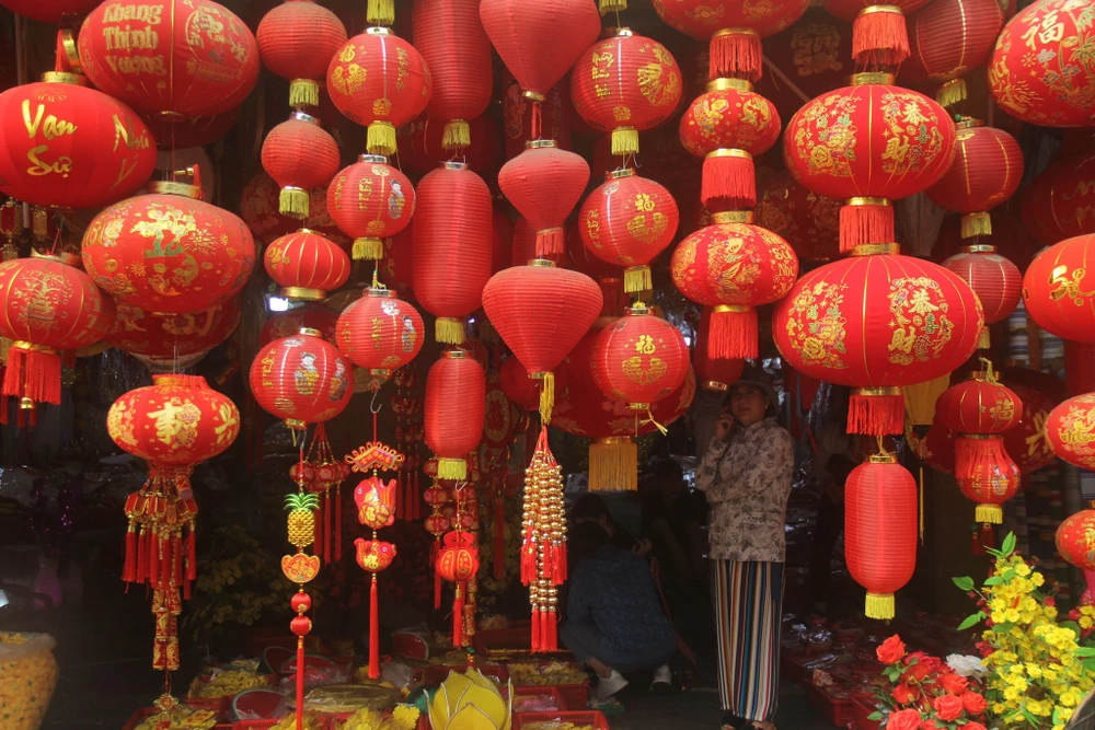 Đèn lồng cũng là mặt hàng trang trí thu hút người tiêu dùng, sức mua mạnh nhất là người Hoa. Theo đó, giá đèn lồng từ 150.000 đồng/cái,