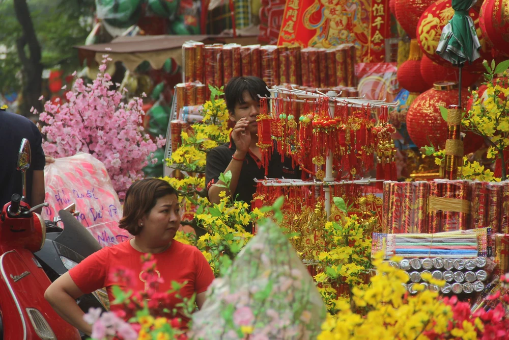 Chỉ còn hai ngày nữa tới tết Nguyên đán nhưng con đường Hải Thượng Lãn Ông, quận 5, TP.HCM vẫn nhộn nhịp bởi nhiều gia đình đang tất bật tìm mua những món đồ trang trí nhà cửa cho ngày tết.