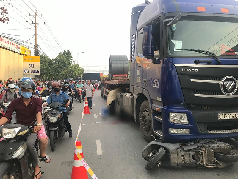 | Liên tiếp các vụ tai nạn chết người Vào tối 28-5, trên đường ĐT743 đoạn qua địa phận thị xã Dĩ An, Bình Dương, một người đàn ông hơn 50 tuổi đã va vào xe tải, ngã xuống đường. Lúc này chiếc xe tải đã cán qua người khiến nạn nhân tử vong tại chỗ. Trước đó, ngày 26-5, anh NVT, ngụ Bình Dương, điều khiển xe máy lưu thông trên đường ĐT743. Khi đến đoạn thuộc khu phố Bình Đáng, phường Bình Hòa, thị xã Thuận An, xe anh T. tông trực diện vào đuôi xe container đang dừng đỗ bên đường. Sau cú va chạm mạnh, xe máy lọt vào gầm xe container khiến nam thanh niên tử vong tại chỗ. Khuya 10-4, trên đường ĐT743 đoạn thuộc phường Bình Hòa, thị xã Thuận An, anh VVB, 20 tuổi, quê Thanh Hóa, đi xe máy va chạm mạnh với xe máy của hai thanh niên chạy ngược chiều. Tai nạn làm ba người trên hai xe ngã xuống đường. Anh B. bị chấn thương nặng, tử vong tại chỗ, hai thanh niên chạy xe ngược chiều phải nhập viện cấp cứu. Chiều 15-3, cũng trên tuyến đường này, đoạn qua phường Bình Thắng (thị xã Dĩ An, Bình Dương) xảy ra va quẹt giữa xe máy và xe tải khiến thanh niên đi xe máy tử vong. |