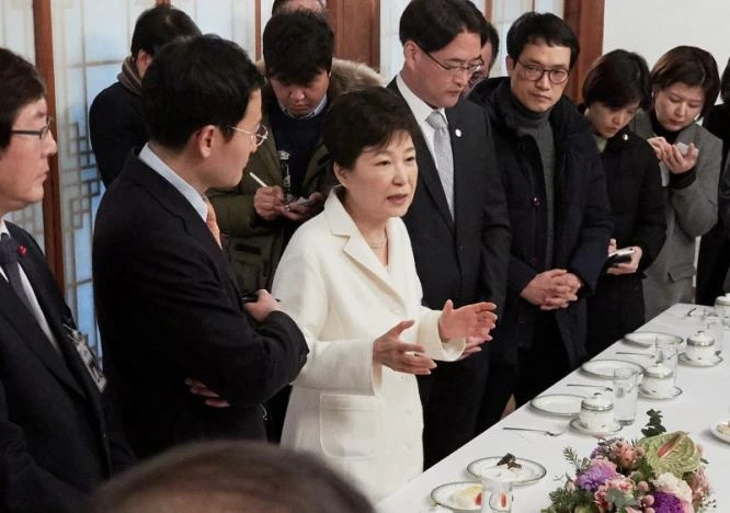 Tổng thống Hàn Quốc Park Geun-hye phát biểu trong cuộc gặp với báo giới tại Nhà Xanh hôm 1-1. Ảnh: YONHAP