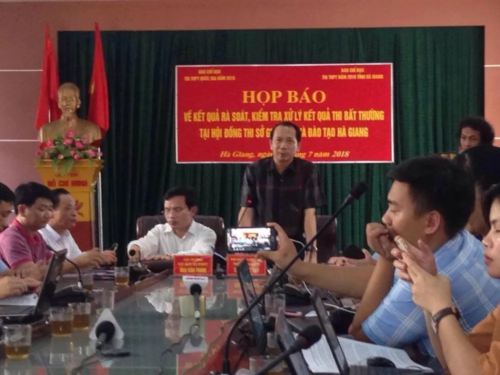 Buổi họp báo công bố thông tin vụ gian lận điểm thi ở Hà Giang. Ảnh: HÀ PHƯỢNG
