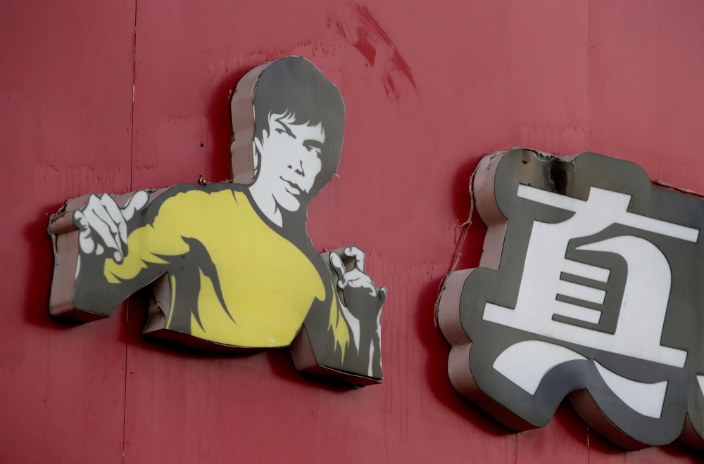 Logo của nhà hàng Real Kungfu cho thấy một người đàn ông giống Lý Tiểu Long, với tư thế quen thuộc trong phim Tinh Võ Môn (1972). Bên dưới logo là dòng chữ "Real Kungfu".