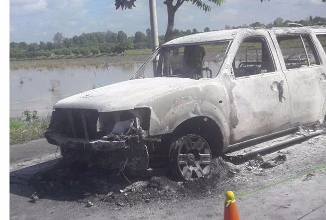 Chiếc xe bị thiêu rụi chỉ còn trơ khung.