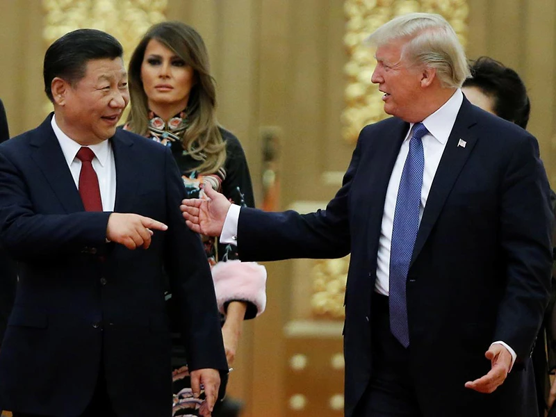 Chủ tịch Trung Quốc Tập Cận Bình (trái) tiếp đón Tổng thống Mỹ Donald Trump (phải) trong chuyến thăm của ông đến Bắc Kinh vào tháng 11-2017. Ảnh: REUTERS