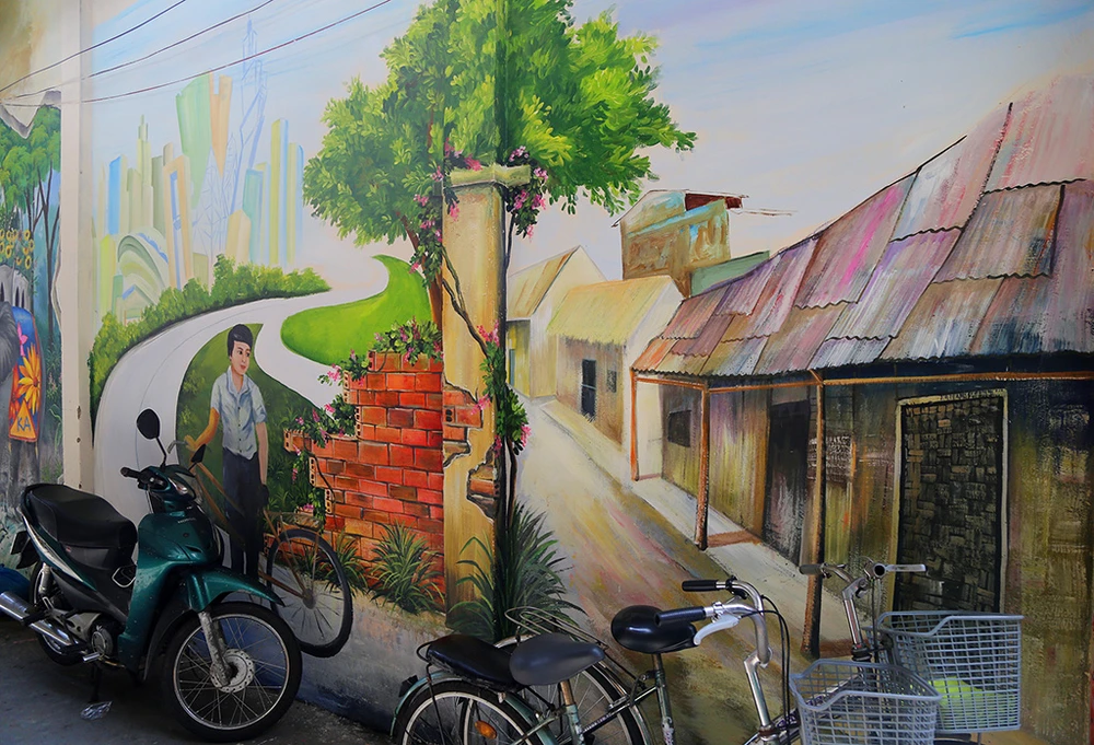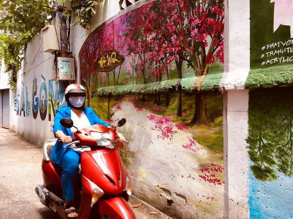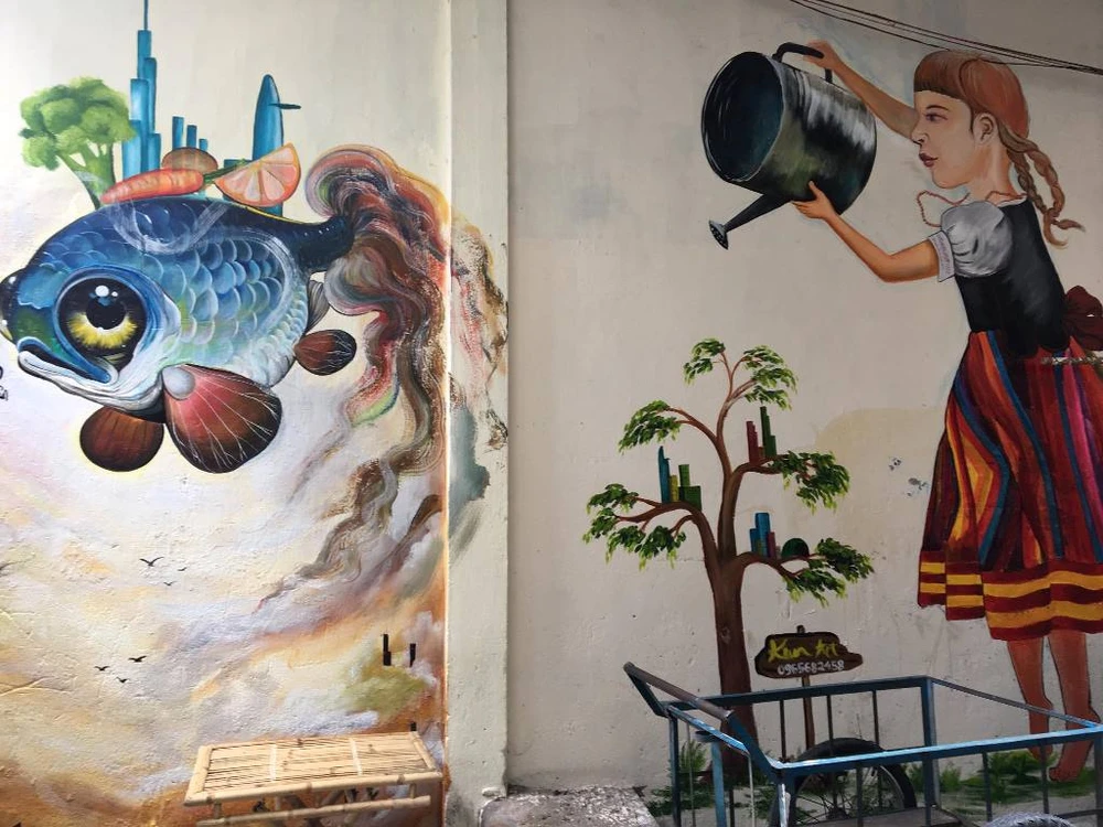Con hẻm nhìn sáng sủa và vui mắt hẳn lên nhờ những bức tranh đẹp mắt. Ảnh: Hoàng Giang