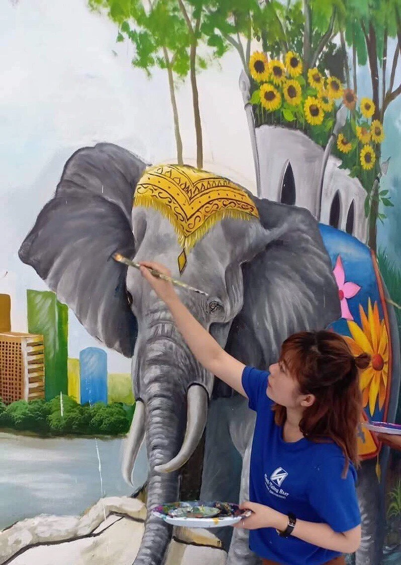 Họa sĩ Kim Oanh và bức tranh về chú voi ở Bản Đôn.