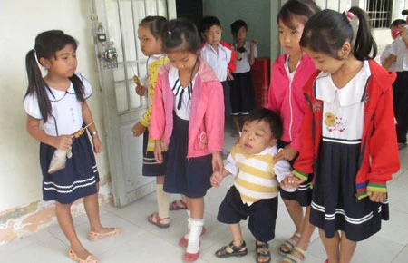 | Có một lần An không tự bưng được chén cơm, phải đặt xuống nền nhà rồi cúi gồng mình xúc cơm ăn. Bà ngoại An xót quá định xúc cơm cho An nhưng cha mẹ ngăn lại để An tự làm. Sau bữa đó, cha An cưa cụt chân bàn, chân ghế, chân giường trong nhà để An có thể tự phục vụ, sinh hoạt như người bình thường. Cha An còn làm cây bóng rổ cao gần… 80 cm để em tập thể thao. ________________________________________ Lúc mới vào chủ nhiệm lớp, tôi lo cho An lắm, tôi nghĩ một cậu bé khuyết tật nặng như An sẽ khó hòa nhập. Nhưng tôi bất ngờ vì tính An rất hài hước, dễ hòa đồng. Đó là một cậu bé đáng yêu và thông minh. An học giỏi nhất lớp đó. Cô giáo HUỆ SAN (trường Tiểu học Trường Tây D, tây Ninh) |