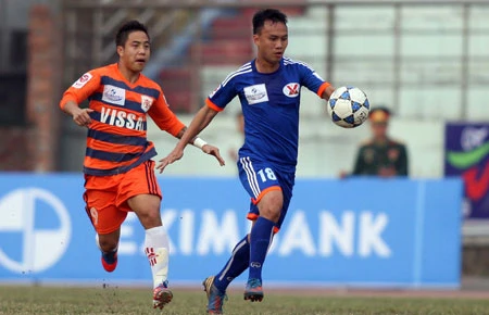 Cầu thủ Than Quảng Ninh (phải) thi đấu rất hay trên sân nhà lẫn sân khách nhưng nay có nguy cơ buông xuôi vì bất đồng với lãnh đạo CLB. Ảnh: QUANG THẮNG