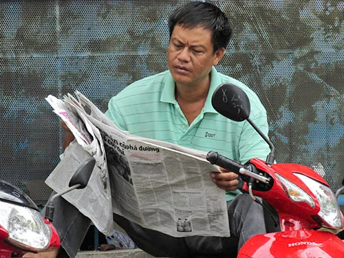 Đọc báo để tạm quên nỗi lo chờ đợi - Ảnh: Phước Tĩnh