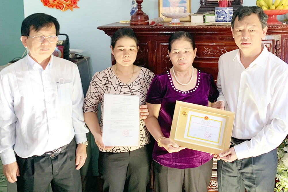 Đoàn công tác BV Chợ Rẫy trao kỷ niệm chương “Vì sức khỏe nhân dân” cho người thân anh NHQ vì nghĩa cử cao đẹp. Ảnh: HOÀNG LAN