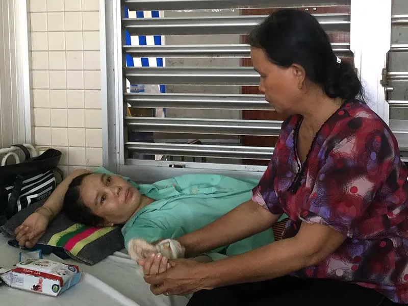 Mẹ chị Khải đang chăm sóc chị tại BV Chợ Rẫy. Ảnh: NGUYỄN HIỀN