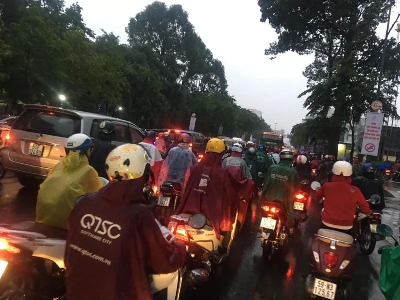 Theo ghi nhận của PV, nhiều tuyến đường trên địa bàn TP.HCM rơi vào tình trạng ùn tắc sau khi vướng phải cơn mưa chiều.