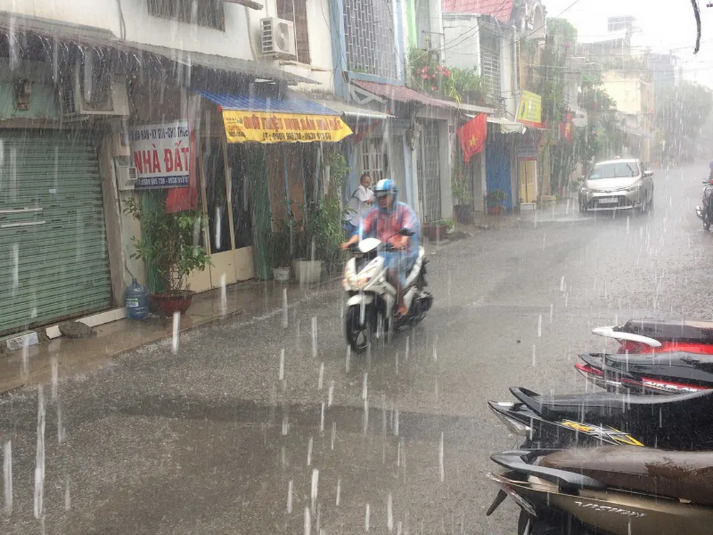 Cơn mưa khá lớn bất ngờ trút xuống Sài Gòn giữa ngày nắng nóng. Ảnh: N.THẮNG