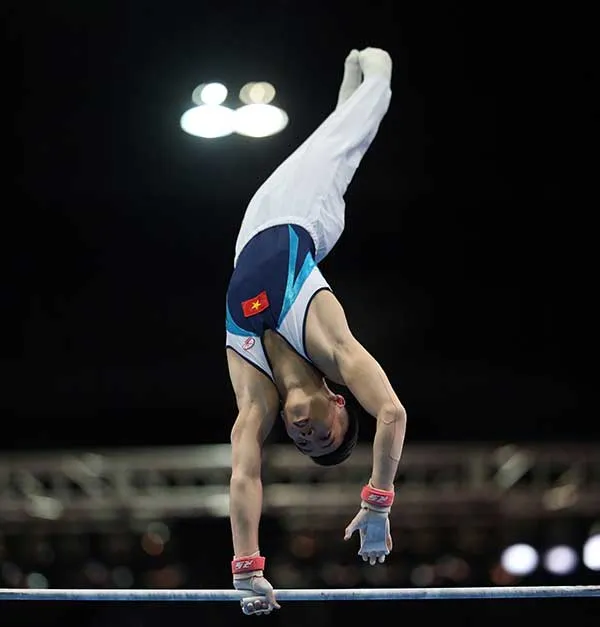 Ít phút sau, đến lượt Đinh Phương Thành đăng quang nội dung xà kép. Điểm số gần như tuyệt đối 14,90 giúp Phương Thành đoạt chiếc HCV thứ năm về cho môn thể dục nghệ thuật.