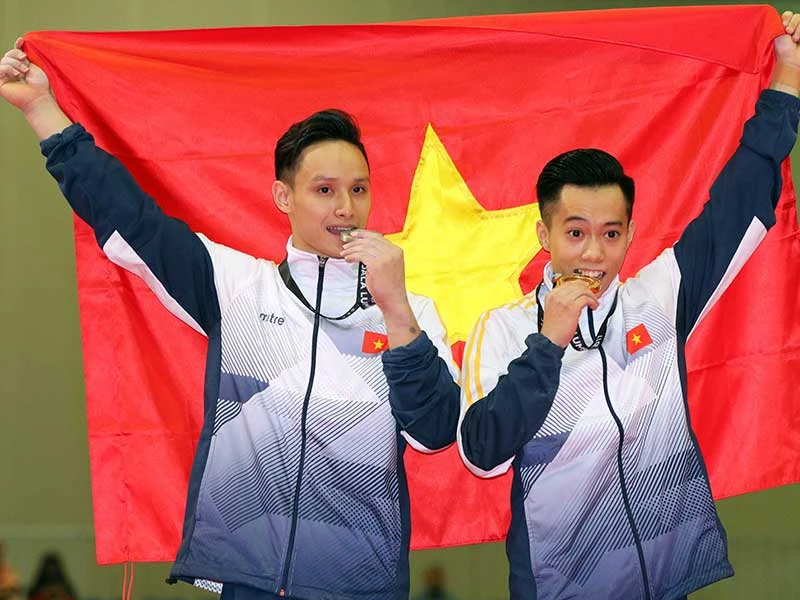 Hai chàng trai vàng Việt Nam Đinh Phương Thành (trái), Lê Thanh Tùng. Ảnh: HUY PHẠM
