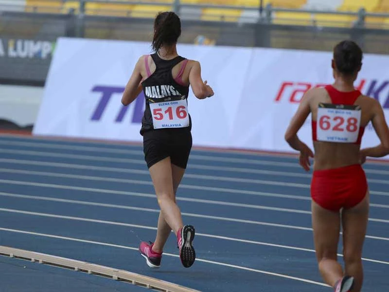 Góc máy của PV Hoàng Hùng đã tố cáo VĐV chủ nhà phạm quy chạy trong môn đi bộ khiến Bích Hà bị “cướp” HCV. Ảnh: HOÀNG HÙNG