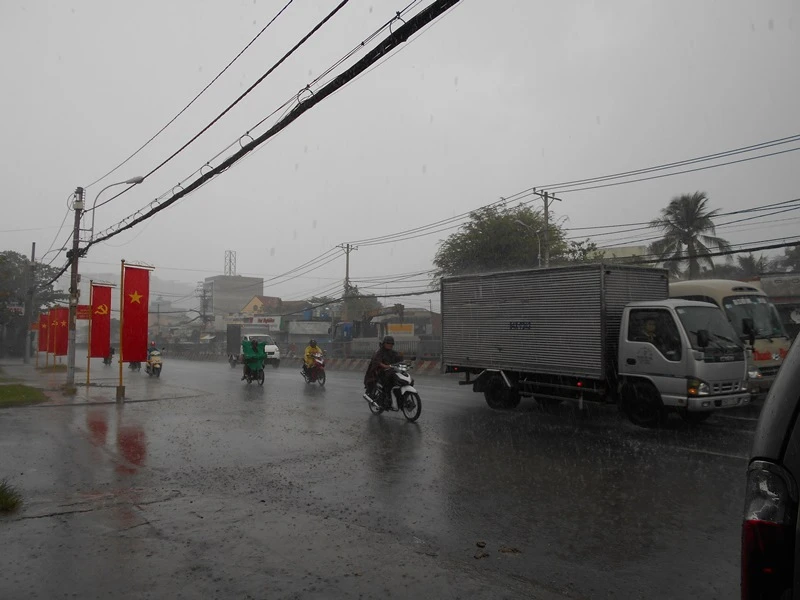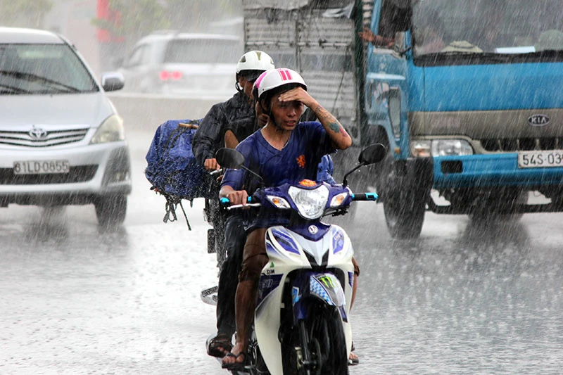 Cơn mưa đầu mùa trên địa bàn quận Thủ Đức, chiều 5-5. Ảnh: HOÀNG GIANG