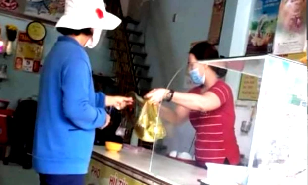 Nghe PV nói TP.HCM cấm bán thức ăn mang về để phòng, chống dịch COVID-19, chủ quán phân bua: “Tôi biết chứ, nhưng ngặt nỗi không bán thì không có tiền trả mặt bằng. Nói thiệt, tôi vừa bán vừa sợ cơ quan chức năng phát hiện rồi phạt tiền”.