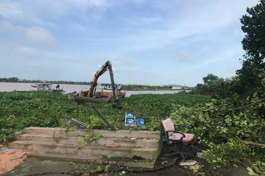 Ngày 13-9, ông Phạm Anh Linh, Phó Chủ tịch UBND huyện Chợ Lách, cho biết hiện chính quyền địa phương xã Vĩnh Bình và huyện Chợ Lách phối hợp với Sở NN&PTNT khẩn trương huy động lực lượng, phương tiện khẩn cấp khắc phục sự cố sạt lở lớn tại cồn Phú Đa (xã Vĩnh Bình, huyện Chợ Lách).