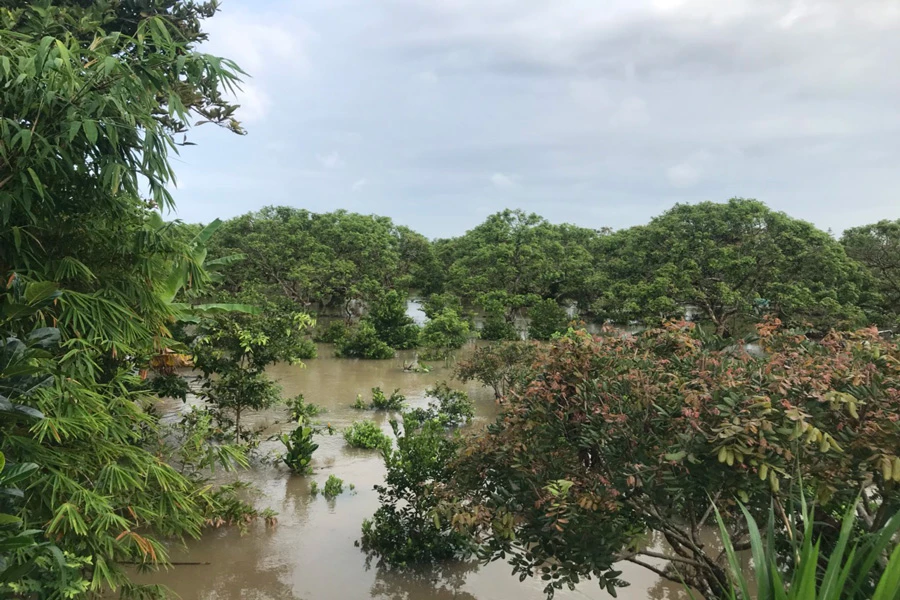 12ha diện tích cây ăn trái bị ngập chìm trong biển nước sau vụ sạt lở tại cồn Phú Đa. Ảnh: PV