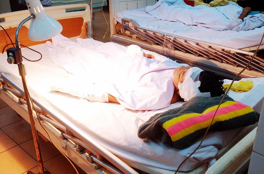 Chị Ksor H’lum đang được cấp cứu tại bệnh viện.
