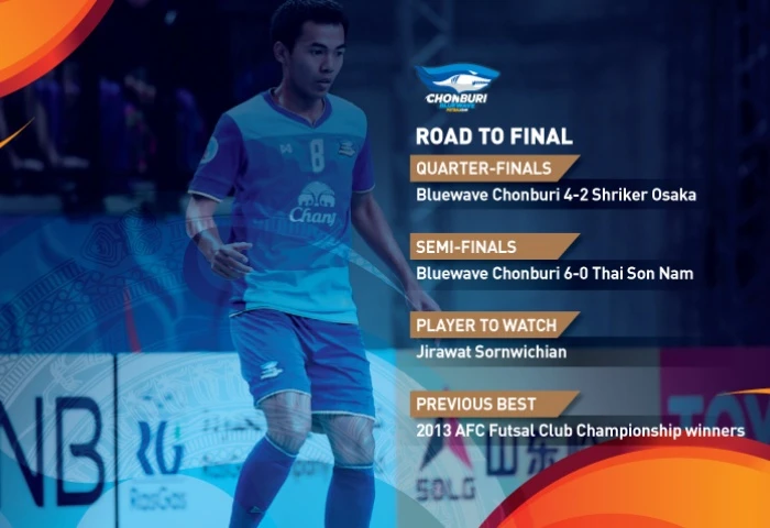 Hai đội vào chung kết giải là đại diện của hai nền Futsal hàng đầu châu lục. Sanaye Giti Pasand đến từ cường quốc Iran thì Bluewave Chonburi đến từ Thái Lan được xem là đội tuyển quốc gia Thái thu nhỏ. Chonburi cũng từng vô địch giải này vài lần. Điều quan trọng hơn là trong đội hình của đại diện Thái Lan vẫn còn đó những gương mặt từng đoạt các giải cá nhân của AFC như tiền đạo Sufawut (số 9, có chiều cao tốt nhất đội). Sufawut dù to cao nhưng kỹ thuật cực kỳ tinh tế và đôi chân uyển chuyển, rất ngoan. Bên cạnh đó còn có Jirawat, cầu thủ đã có cú hat trick vào lưới Thái Sơn Nam ở bán kết trong chiến thắng 6-0.