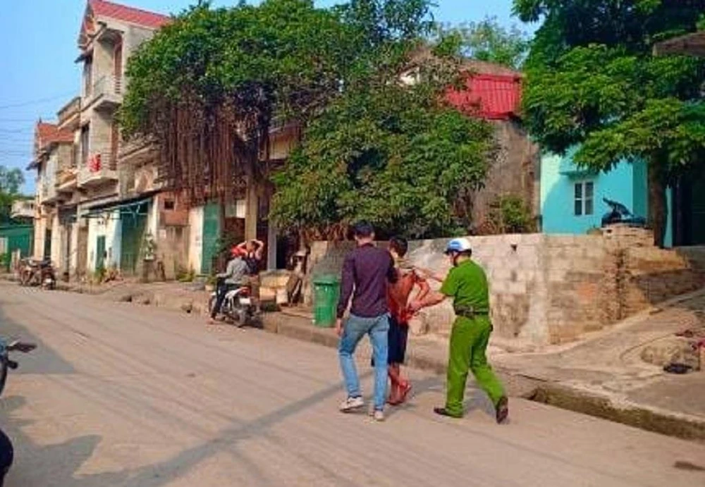 Lực lượng công an khống chế nghi phạm chém trọng thương cha mẹ mình. Ảnh: Facebook