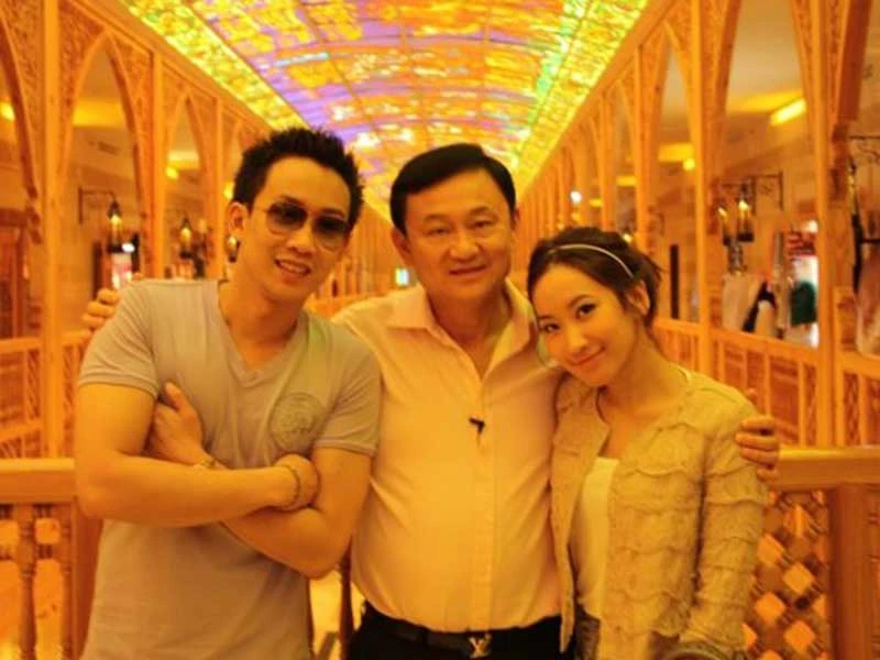 Ông Thaksin (giữa) chụp ảnh cùng người con trai Panthongtae (trái). Ảnh: KHAOSOD