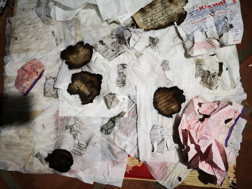 Thời điểm đó Phong đã nhanh tay đốt nhiều giấy tờ, tài liệu thể hiện việc cho nhiều người vay nợ. Tuy nhiên công an vẫn thu giữ được nhiều tài liệu liên quan...