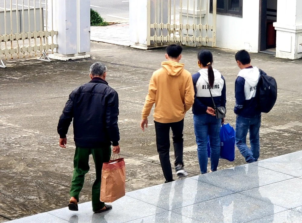 Phiên tòa kết thúc, ông Tình dặn vội bị cáo đôi điều rồi ra bến xe để trở về Thái Bình. Ảnh: T.AN