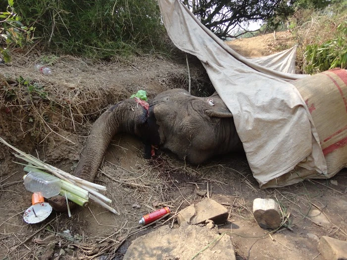Hiện trường nơi con voi bị giết chết một cách dã man.