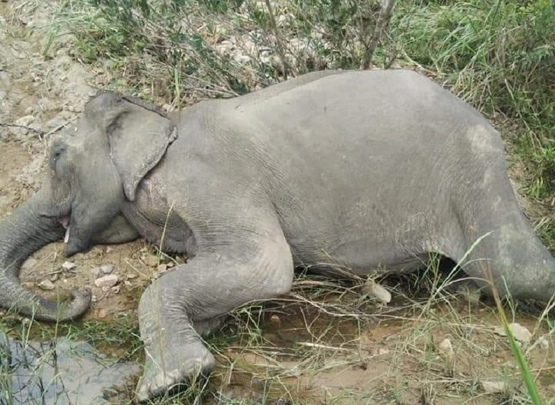 Voi Yă Tao đã chết cạnh bờ suối sau nhiều ngày chán ăn, mệt mỏi. Ảnh TH