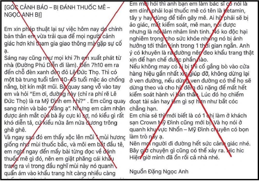 Cụ thể, gần đây trên mạng xã hội Facebook xuất hiện thông tin tại khu vực đường Phú Diễn, Mai Dịch, Lê Đức Thọ xuất hiện tình trạng một số người dân bị đánh thuốc mê Ketamin, gây ảo giác, mê man và mất kiểm soát. Thông tin này đã gây hoang mang trong dư luận người dân.